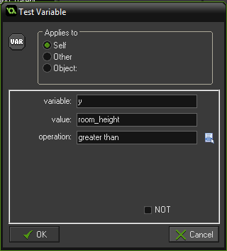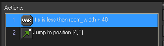 , variable será x, value será room_width – 40 y operation smaller than. En Jump position