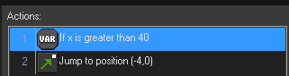 , donde variable será x y value 40. Operation será greather than. Añadimos la acción Jump position