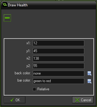 Ahora añadimos la energía, que corresponde con la variable Health. Añadimos la acción Draw Health con estos parámetros: