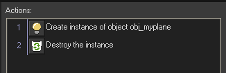 ¡La acción Change instance se tiene que relacionar con el objeto obj_myplane!