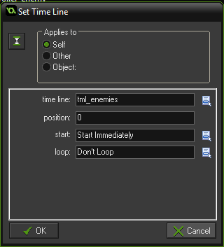 De esta manera podemos añadir todos los objetos que queremos, y en el Step que queramos. En el último Step que añadimos al timeline, podemos mostrar un mensaje que ponga Has sobrevivido a todos los ataques y un Restart Game. Para poder ejecutar el timeline, iremos al obj_controller_enemy, eliminamos las acciones y los eventos de alarma y añadimos la acción Set timeline
